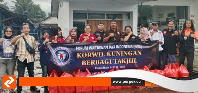 Kuningan, Perpek Media – Dalam rangka menyemarakkan bulan suci Ramadhan 1447 H/2026 M, Forum Wartawan Jaya Indonesia (FWJI) Korwil Kabupaten Kuningan menggelar kegiatan sosial dengan membagikan takjil kepada para pengguna jalan.